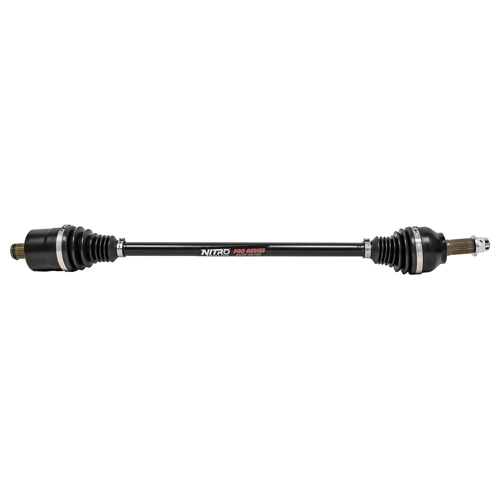 Nitro Gear & Axle’s Pro Series SXS Axles are up to 30% stronger than a stock setup. The Nitro Team have designed and developed this powersports specific axle to deliver top of the line quality and performance while keeping you within budget. They are manufactured with 4340 ultra-high strength steel bars and feature heat-treated CV components for maximum strength and durability. All Pro Series SXS axles are fully assembled for an easy installation. The Nitro brand has been a staple for gears and axles, and we back that legacy by including a 1-year limited warranty on the Pro Series Axles.